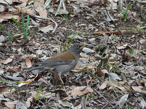 | シロハラ[2月17日] せっせと餌探しです。 | ツグミ[2月17日] ここのは警戒心が強くすぐに飛び上がってしまいます。 | |