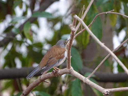 | ジョウビタキ[2月19日] 向かいの広場との間を行ったり来たりしているようです。 | シロハラ[2月19日] しきりに上空を気にしていました。 | |