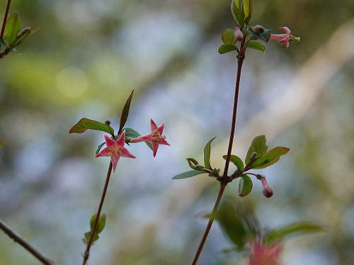 | ジョウビタキ[2月24日] 先日よりは良い所に止まってくれました。 | ウグイスカグラ[2月23日] 小さな可愛い花をつけ今年もひっそりと咲いていました。 | |