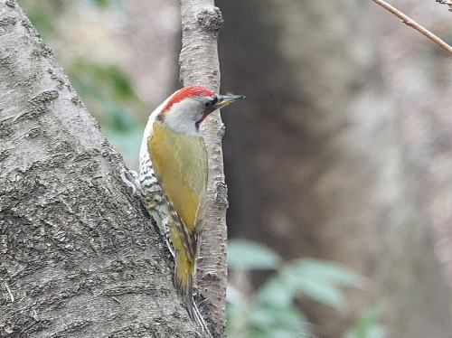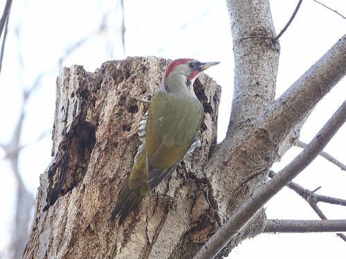 | シメ[3月11日] 一口食べては用心深く辺りを警戒していました。 | アオゲラ[3月11日] コツコツと大きな音が聞こえました。穴が沢山あるので餌獲りでしょうか。 | |