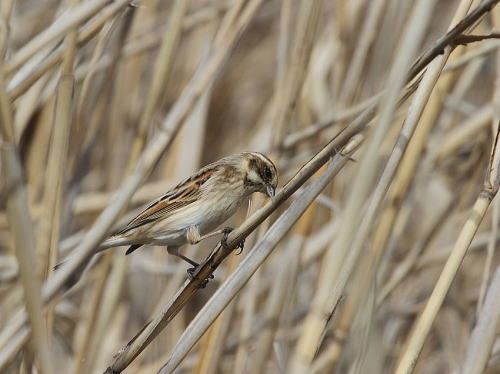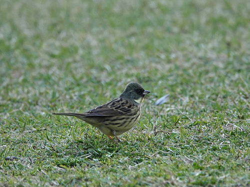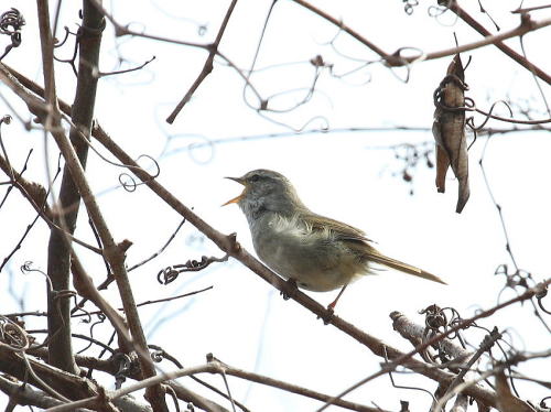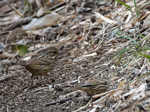 | ウグイス[3月22日] 元気よく囀っています。あちこちからも聞こえてきました。 | オオジュリン[3月22日] 数羽の群れでした。 | |