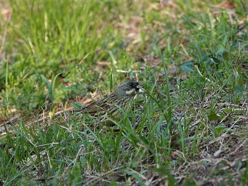 | ハイタカ[3月26日] 桜を見ていると上空に現れました。 | アオジ[3月26日] 植込みの中から出て来ました。数羽いました。 | |