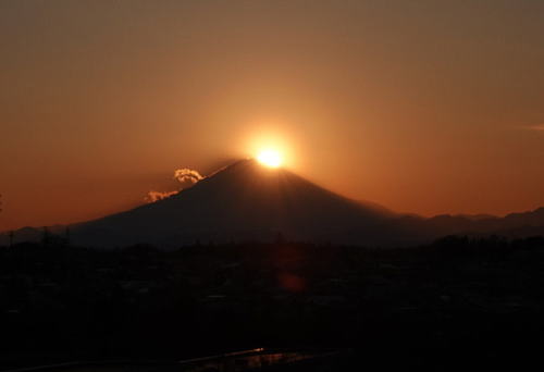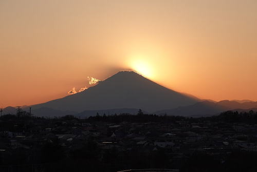 | ツグミ[3月26日] 今の時期は多いはずですがぽつりぽつりしか見掛けません。 | ダイヤモンド富士[3月24日] 頂上の少し北寄りに沈みました。 | |
