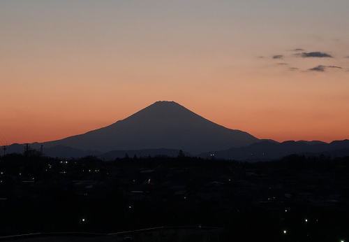 | ダイヤモンド富士[3月24日] 真上に沈むのは昨日だったのかも。今年も天候に恵まれませんでした。 | 夕焼け富士[3月24日] 夕焼けが綺麗でした。 | |