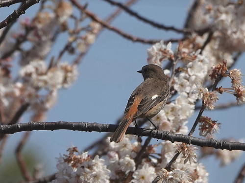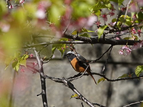 | ウグイスカグラ[3月14日] 可憐で遠目には目立ちませんが見事に花をつけました。 | ジョウビタキ[3月14日] 聞きなれない囀りだと思ったらジョウビタキが現れました。ここで囀りを聞くのは初めてです。 | |