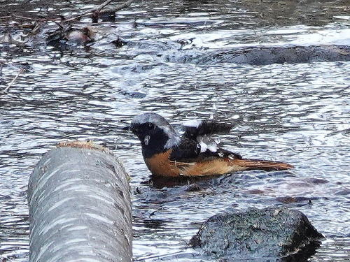 | ジョウビタキ[3月15日] ひっそりとした薄暗い小川で水を飲み水浴びしていました。 | ジョウビタキ[3月15日] 昨日の囀りに釣られたのか♀がやって来ました。 | |