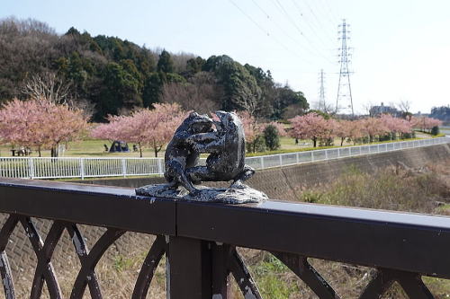 | 蛙(かわず)桜[3月12日] このアングルと言葉の面白さを教えて下さった友人に感謝。 | 蛙(かわず)桜[3月12日] 相撲蛙のオブジェ。 | |
