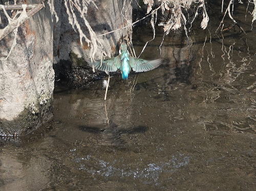 | カワセミ[3月2日] 何度も何度も飛び込んでいたので水浴びだったようです。 | カワセミ[3月2日] 水浴びした後、長い間止まっていました。 | |