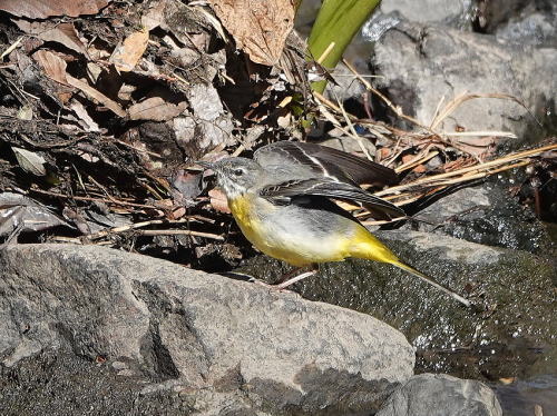 | エナガ[3月9日] 巣材集めのようですが、運んで行った先は分かりません。 | キセキレイ[3月8日] 水浴びでもしていたのでしょうか。 | |