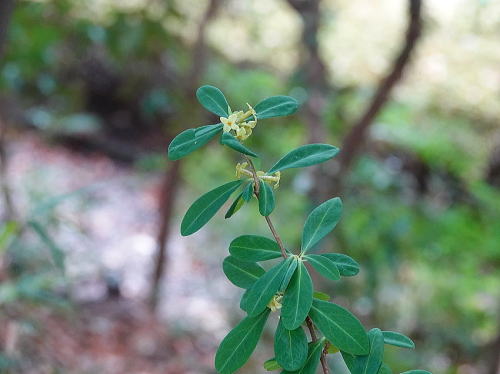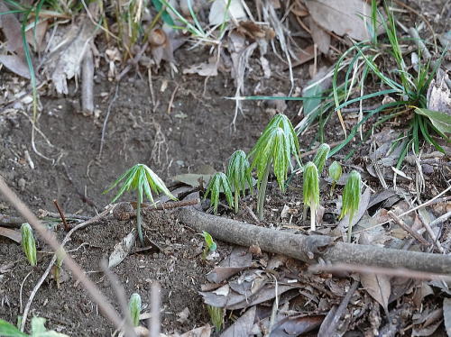 | ツチグリ[3月1日] 夏から秋がシーズンらしいですが何個も見かけました。 | オニシバリ[3月1日] 可愛い花を付けているのを見つけました。 |