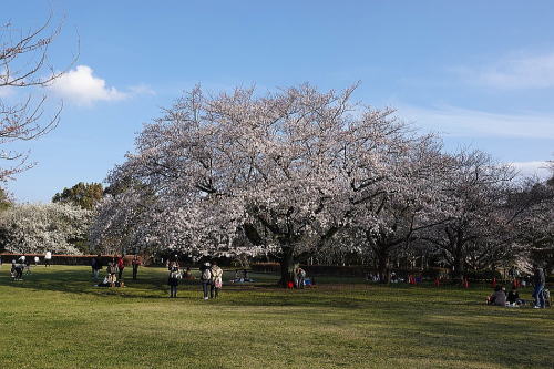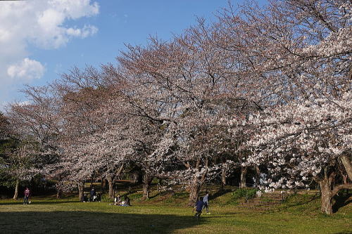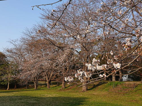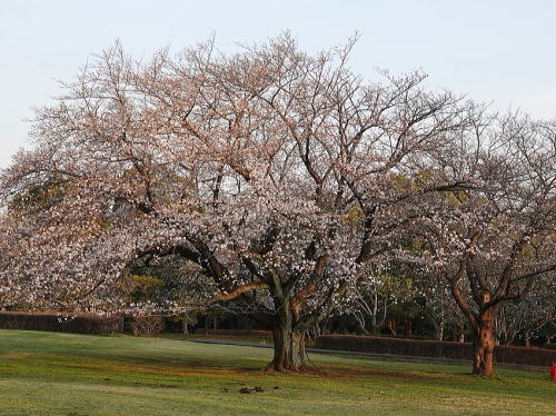 | 桜[3月31日] 昼頃は大勢の花見人で賑わっていたことでしょう。 | 桜[3月31日] しばらく寒かったせいか未だ満開ではありません。 | |