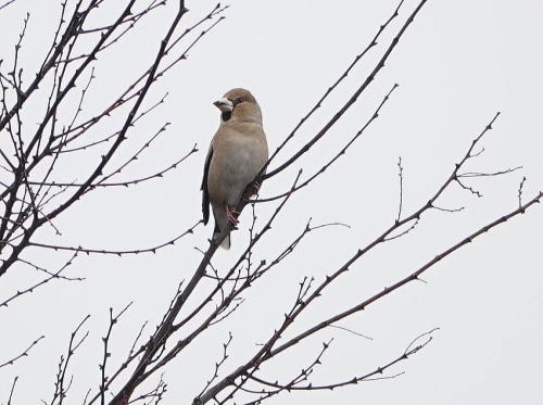 | オオバン[3月2日] こちらも番になっているのでしょう。 | シメ[3月1日] 今日も何にもいないと言いながら歩いていると高い木の天辺に見つけました。 | |