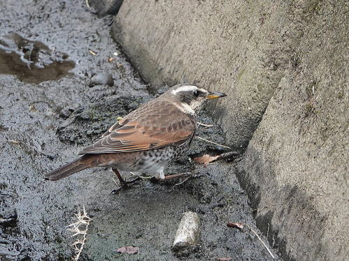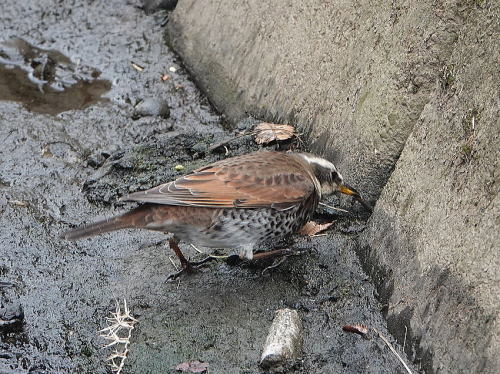 | ツグミ[3月6日] 川に溜まった泥の中から何かを取り出して食べました。 | ツグミ[3月6日] ミミズでは無さそうだし何でしょうか。 | |