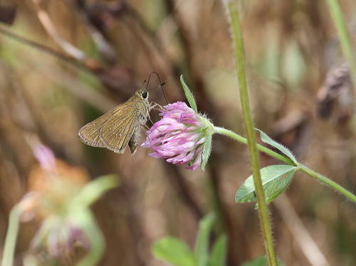 | モンキチョウ[8月22日] 次々に花を移っていきます。 | チャバネセセリ[8月22日] 花は違いますが同じ所にいました。 | |