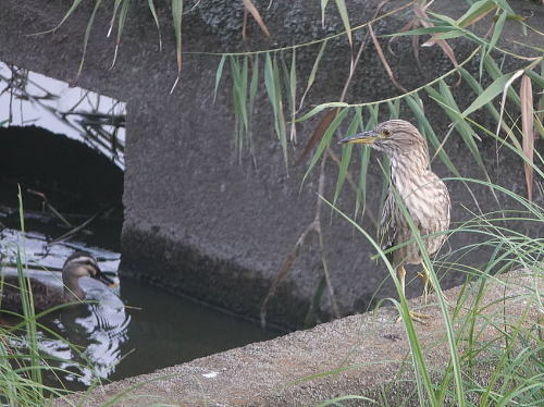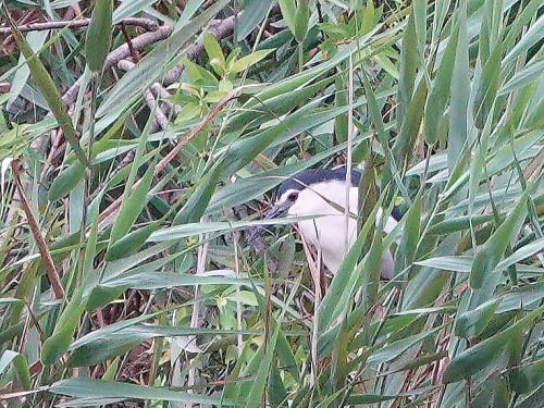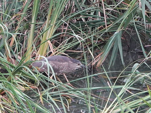 | ホシゴイ(ゴイサギ)[8月6日] 動かないと気づきません。 | ゴイサギ[8月6日] 茂みの中で殆ど見えません。 | |