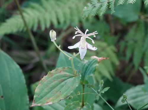 | ヤマホトトギス[8月1日] 一面緑の中で目立っていました。 | クサギ[8月1日] 甘い香りに足が止まりました。 | |