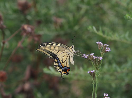| オオタカ[8月22日] 若鳥です。遊水地の上を飛んで行きました。 | キアゲハ[8月22日] 鳥がいません。蝶が飛び交っていました。 | |