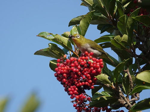 | ヒヨドリ[8月25日] 幼鳥でしょうか。 | メジロ[8月25日] 入れ替わり立ち替わりやって来ます。 | |