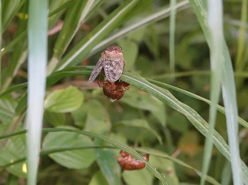 | カワセミ、カルガモ[8月10日] 幼鳥(カワセミ)です。 | アブラゼミ[8月10日] まもなく羽が乾いて飛び立つでしょう。 | |