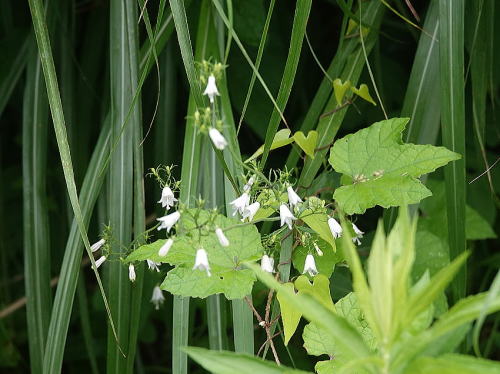 | キツネノカミソリ[8月23日] 薄暗い所に咲いています。撮っている間蚊の猛攻に遭いました。 | ツリガネニンジン[8月23日] 秋の花です。 | |