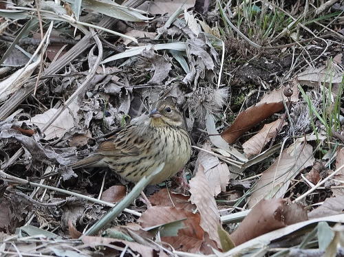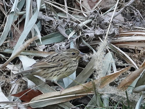| アオジ[2月6日] 草の種を食べています。 | アオジ[2月6日] ススキのような草の種を食べています。 | |