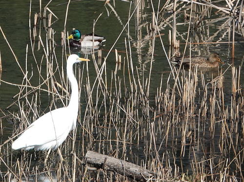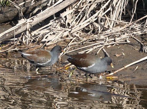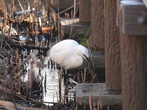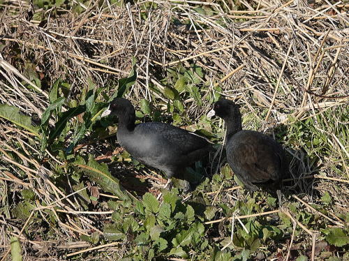 | コサギ[2月13日] 警戒心があまり無く、1〜2m先を歩きながら餌を探していました。 | オオバン[2月11日] もう番つくりが始まっています。 | |