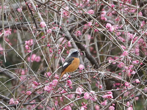 | ヒヨドリ[2月20日] 花より葉っぱを美味しそうに食べています。 | ジョウビタキ[2月20日] 今日は梅に止まってくれました。 | |