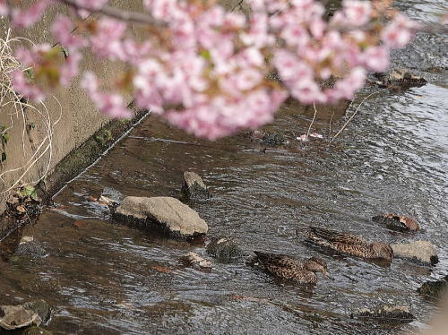 | 河津桜[2月27日] 遠くに富士山が頭を覗かせています。 | ダイサギ、マガモ[2月28日] マガモはしばらく見掛けませんでした。 | |