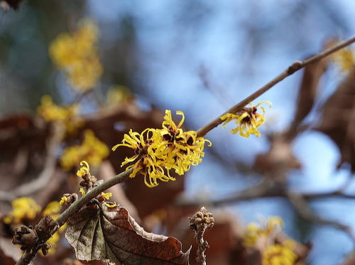 | カワヅザクラ[2月1日] ぽつぽつと咲き始めました。 | マンサク[2月1日] もう満開でした。 |
