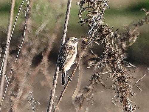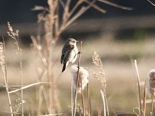 | オオタカ[2月11日] ハトを狙っていましたが残念ながら逃げられたようです。 | ノビタキ[2月11日] 今日も遠かったです。 | |