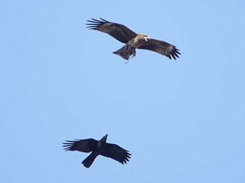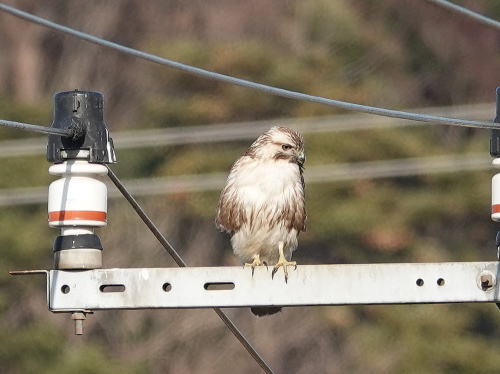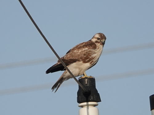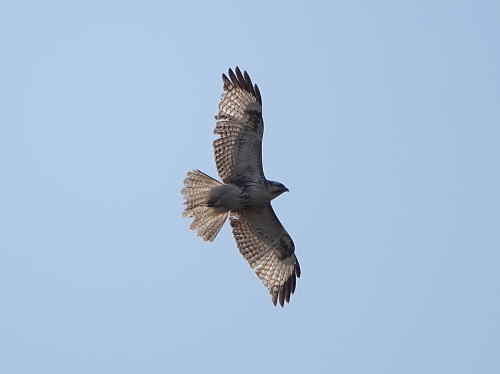 | ノビタキ[2月23日] 顔が少し黒くなったようです。 | ノスリ[2月23日] 今日は上空をゆったりと飛んでいました。 | |