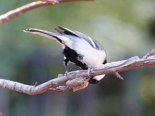 | ヒヨドリ[2月18日] メジロを追い出して独り占めです。 | シジュウカラ[2月18日] ご馳走です、カマキリの卵を見つけました。 | |