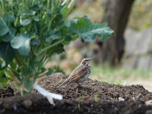 | ジョウビタキ[2月19日] 餌を獲りに下りました。 | ツグミ[2月19日] 菜の花に来るのを待っていましたが。 | |