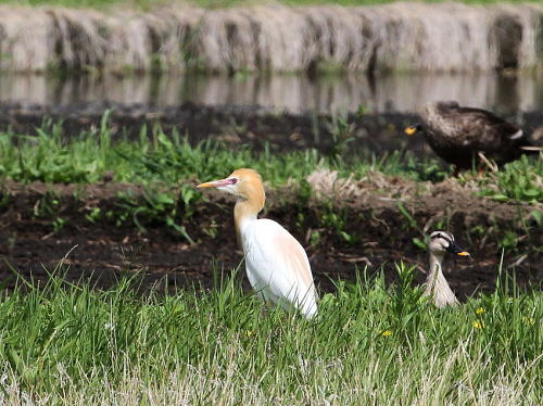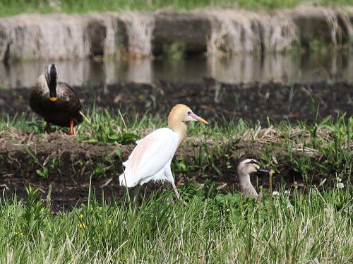 | アマサギ、カルガモ[5月13日] 来ているよと教えていただきました。 | アマサギ、カルガモ[5月13日] 着いたばかりなのか時々うとうとしていました。 | |