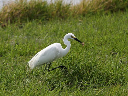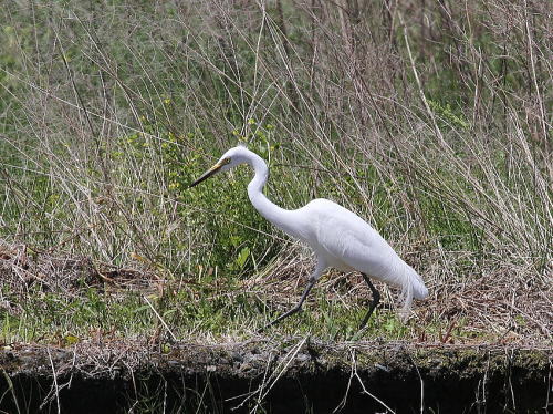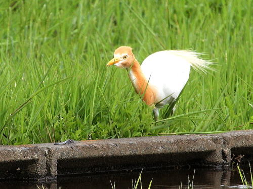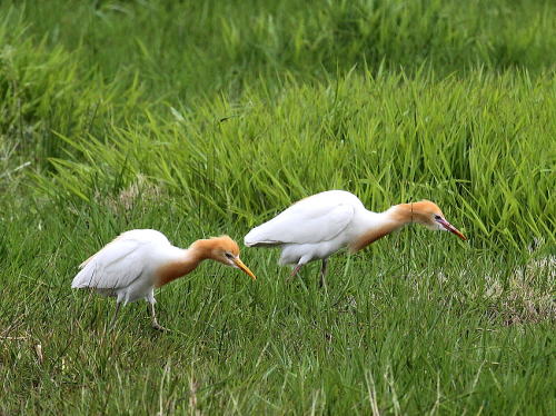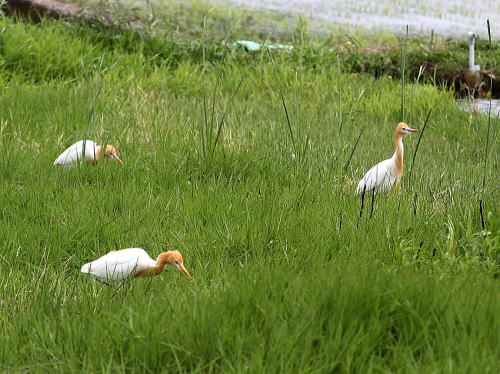 | アマサギ[5月22日] 3羽来ていると教えていただきました。 | アマサギ[5月22日] 餌を探して歩き回っています。 | |