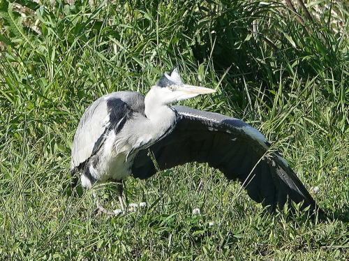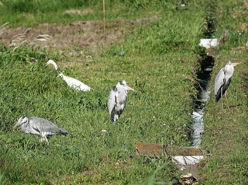 | アオサギ、チュウサギ[5月7日] 餌があるのか集まっていました。 | アオサギ[5月7日] 若鳥でしょうか。 | |