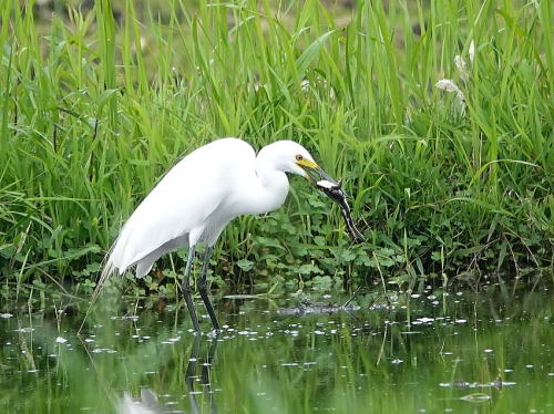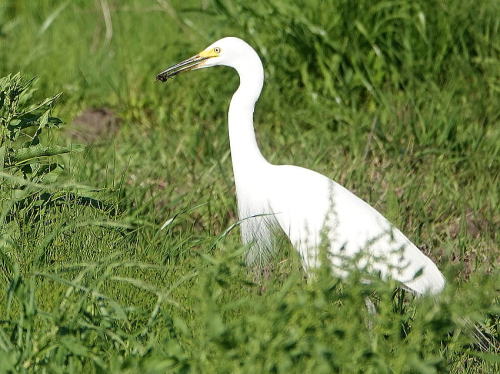 | キセキレイ[5月7日] 今年も営巣しているよと教えていただきました。 | チュウサギ[5月14日] 茂みをじっと眺めていると思ったら蛙を獲りました。 | |