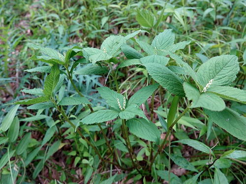 | バン[5月9日] 2羽が浅瀬で採餌中でした。 | フタリシズカ[5月9日] 花序が1本から3本、いろいろ咲いていました。 | |