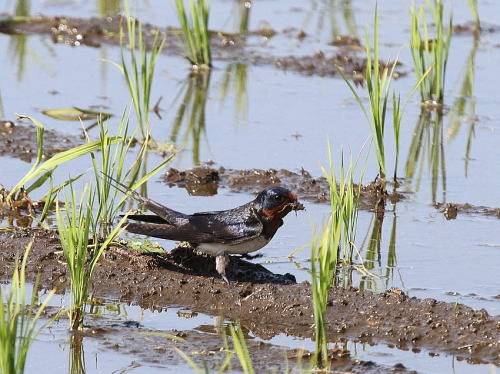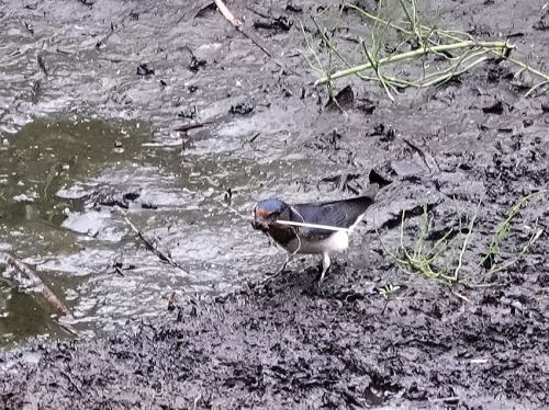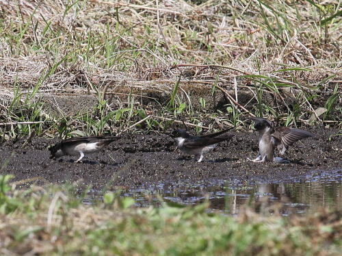 | イワツバメ[5月24日] 何度も何度も運んで行きました。 | ツバメ[5月24日] 巣材の泥を取りにやって来ました。 | |