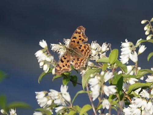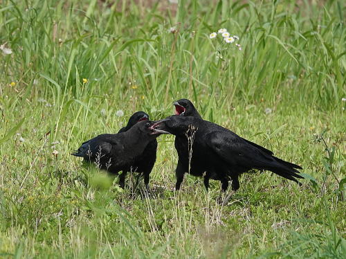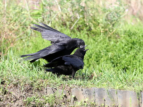 | キタテハ[5月23日] ウツギの蜜を吸いにやって来ました。 | ハシボソガラス[5月23日] 幼鳥が3羽、騒がしいです。 | |