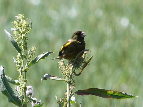 | カワラヒワ[5月7日] ビーンビーンと囀っていました。 | ホオジロ[5月7日] 最近見かけなくなりました。 | |