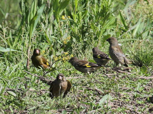 | カワラヒワ[5月24日] 一家のようです。右の3羽は幼鳥です。 | キジ[5月24日] このところ見かけるのは♂ばかりです。 | |