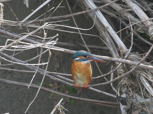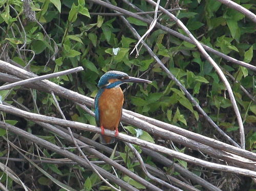 | オオヨシキリ[5月23日] 大きな鳴き声は茂みの中から、たまたま上に出て来ました。 | カワセミ[5月23日] この辺りを縄張りにしているのかよく見かけます。 | |