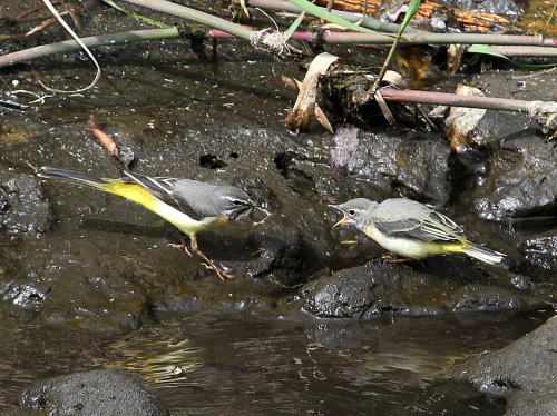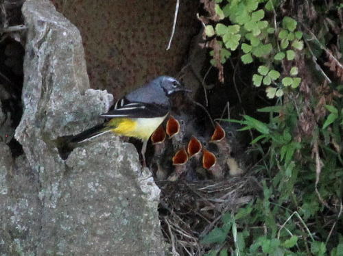 | キセキレイ[5月15日] 親が餌を獲ってきてくれました。 | キセキレイ[5月15日] 何度も餌をねだっていました。 | |