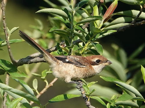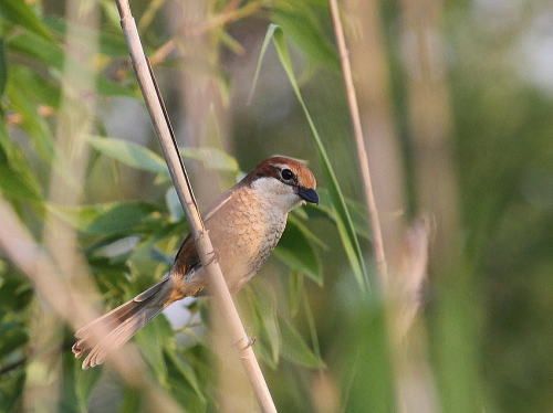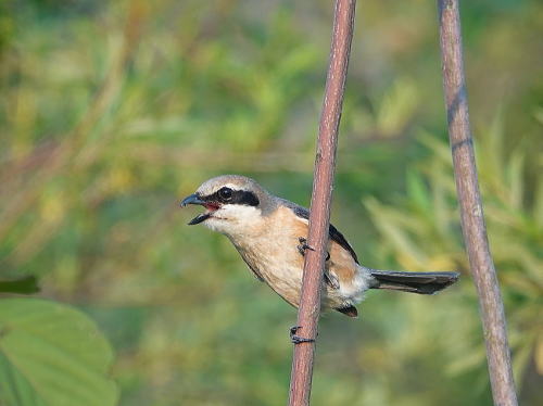 | モズ[5月2日] たまたま通りかかっただけなのにけたたましさに圧倒されました。 | モズ[5月2日] ♀も叫んでいましたが直ぐに隠れてしまいました。 | |