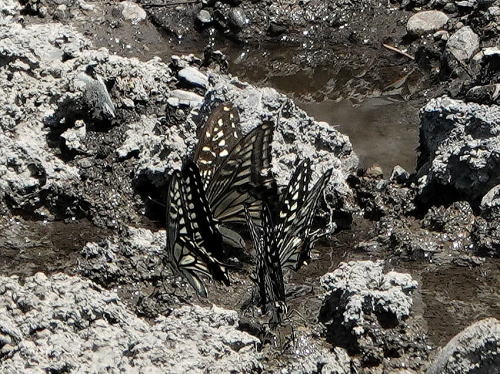 | オオバン[8月1日] えーい、飛んじゃえと一気に進みました。 | アゲハチョウ[8月1日] アゲハチョウが集団で吸水していました。 | |