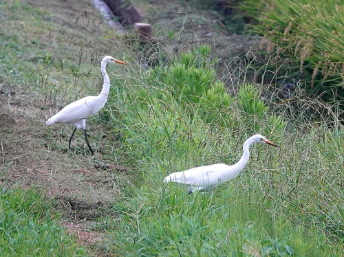 | ヒヨドリ[8月22日] ヒヨドリの声だけど少し違うと思ったら幼鳥でした。 | チュウサギ[8月22日] 2羽いました。 | |