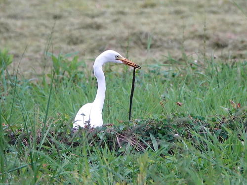 | チュウサギ[8月22日] 餌を探して歩いています。 | チュウサギ[8月22日] もう1羽がヘビを捕まえました。 | |