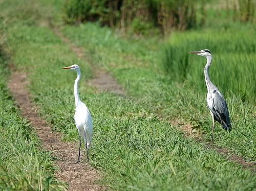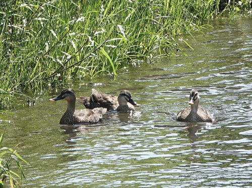 | ダイサギ、アオサギ[8月1日] ダイサギを見かけたのは久しぶりです。 | カルガモ[8月1日] 親と子の区別がつかなくなりました。 | |