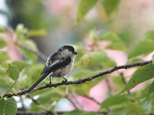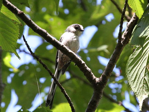 | エナガ[8月27日] 声がしてしばらくすると街路樹に飛んで来ました。 | エナガ[8月27日] サルスベリに止まらないかと待っていましたが・・・。 | |